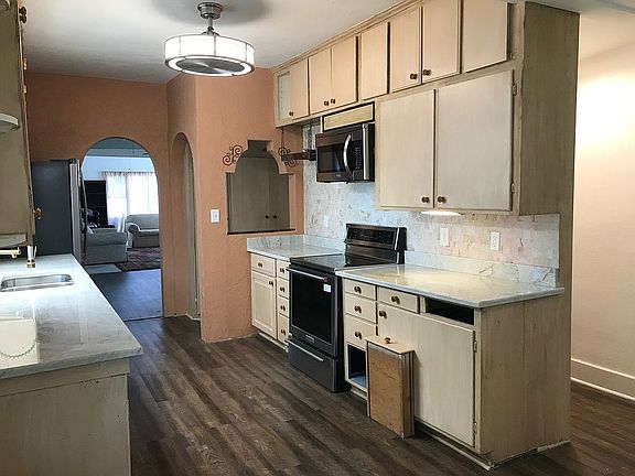 Large older house that is almost completely redone inside with 12 new Pella windows, new flooring, bathrooms and kitchen upgraded, stainless appliances, gorgeous new granite counter tops, and a Spanish stucco design in kitchen. Ceiling fans throughout. Three or four bedrooms - one has been used as an office. Two bathrooms above and one primitive bath in basement. Two bedrooms below and two above; all are good sized, with an extra small room above. Full basement with shelving offers lots of extra space. Radiated boiler gas heat, plus owner offers a split air conditioner that buyer may install. Home takes very little to cool, with mature trees offering cool shade. Fenced back yard and 2-car detached garage in good shape. Lots of new painting and/or priming so it's ready for your colors!