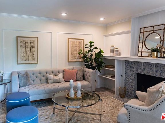 Nestled on a quiet road, this romantic 1926 property is the epitome of Laurel Canyon living infused with French country charm. Inside, lavish natural light illuminates a meticulously renovated home featuring a welcoming tiled fireplace, elegant oak floors, beamed ceilings, and French doors and windows. The charming kitchen glows with marble countertops and European tiles. All ground level rooms open to a picturesque terrace with whimsical outdoor dining and seating areas under the canopy of a leafy California oak tree. The gated home features two en suite bedrooms, an office, a third bath with a clawfoot bathtub, a separate laundry room, and an array of smart technology. Plentiful storage spaces include closets and built-in bookshelves. The property's secret gem is a magical one-bedroom, one-bath caretaker's cottage, a private treetop retreat with canyon views and two outdoor terraces. The cottage has its own separate gated entrance and is a perfect home office, artist's studio, guest house or rental unit. Set in the Wonderland school district, this is a rare idyllic treasure on one of the canyon's most coveted streets.