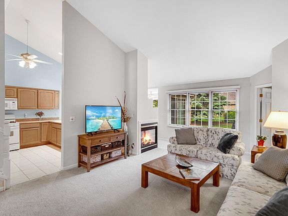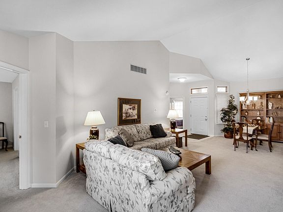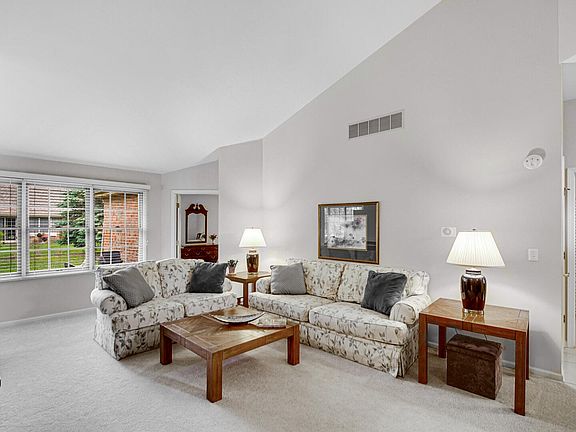 LOCATION! White Oak Estates, an All Brick, End unit townhome,with windows on 3 sides, which includes a southern exposure, for a bright unit with views of the surrounding large green space yard. ---Open concept Great room is combined with the dining room, which has a Cathedral ceiling & 3 sided gas fireplace. ------All the rooms are on the main floor except the 3rd bedroom / bonus room, which is located on the upper level.---The Primary bedroom has a walk in closet, Tray ceiling, spacious private bathroom, double sinks, whirlpool tub and a separate shower.---The Kitchen has neutral wood cabinetry, a peninsula next to the table area, Cathedral ceiling and combines with the family room, a bright room with windows surrounding the room and a patio door to the private patio.---The Laundry room has a pantry closet & is conveniently located, between the kitchen and the attached garage .---The Garage is a spacious 2 car, opener, with a storage closet.---Recent Major updates, Roof 6-2020, Furnace 3-2024, Water heater 2-2025, C air approx. 9 years old. Freshly painted. Clean, move in ready unit. New Train station located approximately 1.5 miles away, has a fast train to Chicago. Train station is scheduled to open this year, very soon. ---HOA takes care of snow, lawn, landscaping, sprinklers (includes sprinkler water) driveway asphalt repair and sealing, gutter cleaning ---2 PETS ARE ALLOWED