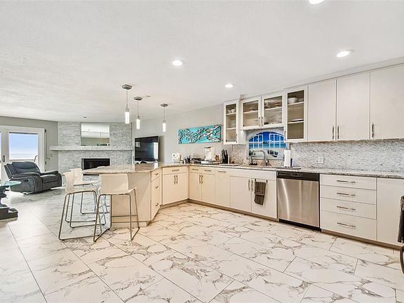 Welcome to Your Slice of Paradise – Gulf Front Penthouse in Indian Shores Experience true beachfront luxury in this DIRECT GULF FRONT PENTHOUSE, where coastal charm meets refined comfort. Located in the heart of Indian Shores, this exceptional 4-bedroom, 3-bath residence offers panoramic views of the Gulf and the Intracoastal Waterway, delivering the ultimate in Florida beach living. Step inside to find sleek, modern updates complemented by timeless finishes. The open-concept great room is anchored by a striking wood-burning fireplace, with ceramic tile flooring flowing throughout the living areas, kitchen, and hallways. The gourmet kitchen is a chef’s dream, featuring custom cabinetry, stone countertops, a breakfast bar that seats six, a closet pantry, and a dry bar with wine cooler—ideal for entertaining. Two spacious en-suite bedrooms with updated baths are located on the main floor, offering privacy and comfort for family and guests. Through the sliding glass doors, step out to your Gulf-front balcony and soak in stunning sunsets and the sound of waves. The upper level boasts a grand master suite with cathedral ceilings, a private beachfront balcony, and expansive views of the Gulf. A versatile fourth bedroom on this level is perfect for a home office, media room, or yoga studio. With two additional balconies, you can enjoy sunrises over the Intracoastal and sunsets over the Gulf—all from your own private retreat. Additional features include: • Gated access • Two assigned under-building parking spaces • Private storage closet for beach gear, bikes, and more • Recently renovated building exterior with Hardie Board siding Whether you’re seeking a primary residence, a luxury vacation home, or a high-end investment, this penthouse offers vacation-style living all year long. Conveniently located near popular restaurants, beach bars, coffee shops, entertainment, and the beach trolley. Don’t miss this rare opportunity—schedule your private showing today and start living the beachfront lifestyle you’ve always dreamed of.