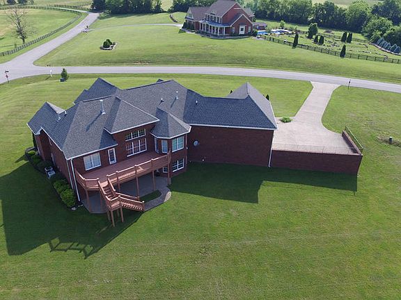 Great opportunity to own a gorgeous custom built ranch walkout situated on 4.5 acres in Fisherville, KY. The owners spared no expense when it came to the finishes of this home. Entering the front door with custom glass paneling you will notice meticulously maintained hardwood throughout most of the first floor. This home offers a split floor plan, with master suite on the right hand side and the additional bedrooms to the left. 10' foot ceilings with 14' foot great room makes this home very open and airy. The formal dining room features beautiful columns, modern chandelier and extensive trim detail. The great room is spacious and has gas fireplace with tile surround, built ins, and a wall of windows that offers natural light and views of the tranquil backyard. The gourmet eat in kitchen