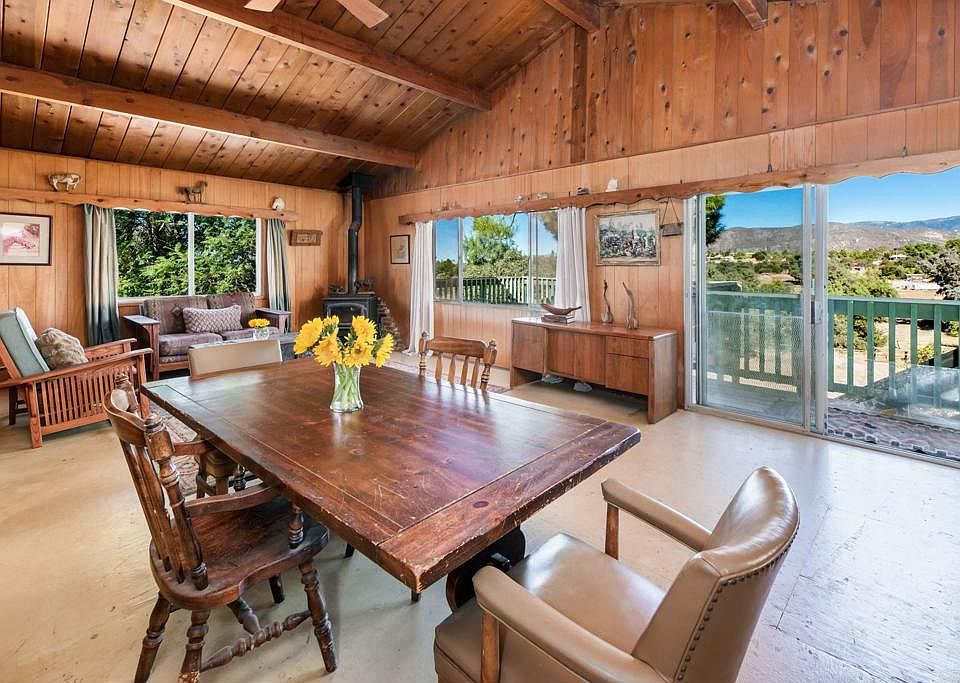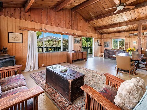 Immerse yourself in the tranquility of rural living on this expansive 21-acre horse property, perfectly positioned to capture breathtaking mountain vistas. The charming two-story home features 3 bedrooms and 2 bathrooms within 2,160 square feet, showcasing rustic wood-planked ceilings and walls throughout most of the home. An expansive deck off the main living area upstairs offers a perfect spot to enjoy the panoramic mountain views and the property's full expanse. Attached to the home is a large, dog-fenced area shaded by a beautiful pepper tree, ensuring your pets stay safe and comfortable. The property is fully fenced and boasts 9 spacious pastures, 5 equipped with shade structures, a round pen, and an extra-large pasture, ideal for equestrian activities. A large open shed provides ample space for storing equipment or hay. The landscape is enriched with fruit, oak, eucalyptus, and pepper trees, adding both shade and visual appeal. Benefit from the convenience of well water for all your needs and enjoy a groomed trail system for on-site riding or walking, with additional trails just minutes from Hell Hole Preserve. This property is a haven for equestrian enthusiasts and those aspiring to own a rural ranch. With its spacious layout and stunning views, it is perfectly equipped to support your equestrian lifestyle or agricultural pursuits.