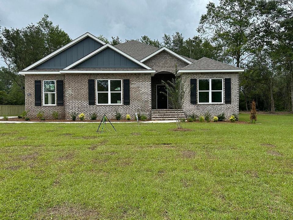 Room to breathe on your acre size property. The Hawthorne plan is 4 bedrooms and 3 baths in nearly 2,500 sqft of space. This home has an over-sized garage, perfect for extra storage, an additional vehicle or other items. Greet your guests in the wide center foyer, long enough to allow privacy in the main living space. The split floorplan has two bedrooms and a full bath towards the front of the home, a second suite with its own private bath and huge walk-in closet is off the great room and the Primary suite is 17x13'11 with beautiful tray ceilings. It has two walk-in closets, and a large en suite bath, with an oversized shower and separate soaking tub. The Great room includes a 26'2 x 19'2 living area, a 12'3 x 13'3 dining area and a 12x18'1 kitchen with white shaker cabinets, granite countertops, farmhouse sink, touchless faucet, island space, and subway tile backsplash. The covered porch can also be accessed thru the dining area.