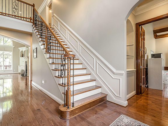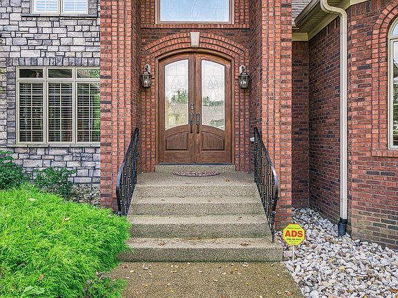 Looking for over 7000 finished square feet of luxury living? This stunning 1.5 story walkout is located in the prestigious Estates of Locust Creek. This 6 bedroom 4.5 bath home features a spacious open floor plan and custom details. You will find gleaming hardwood flooring throughout the main living areas and brand new added hardwood floors in the main bedroom. The home features an open dining room with two archways and 2 story great room with a gorgeous fireplace with detailed cabinetry on each side. The gourmet kiitchen features custom maple cabinetry w/black glazing, granite counter tops, pull out shelving, an arched hutch and walk in pantry. Off the kitchen is the study/hearth room with vaulted ceiling featuring a stone arched entry and