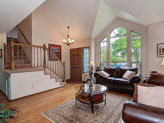 Fabulous 4 bedroom home sits next to a green belt on a quiet cul de sac. Entry has hardwood floors and soaring ceilings. Formal living room & dining room, large family room with cozy gas fireplace adjacent to kitchen. Kitchen has quartz counters with an eat in sitting area, and lots of storage! Spacious master suite with shower, soaking tub & walk in closet. Outdoor has a 900 sq ft wrap around deck overlooking the beautiful mature yard with storage shed, and hidden garden shed, 2 car garage.