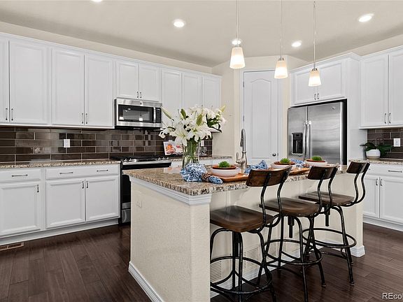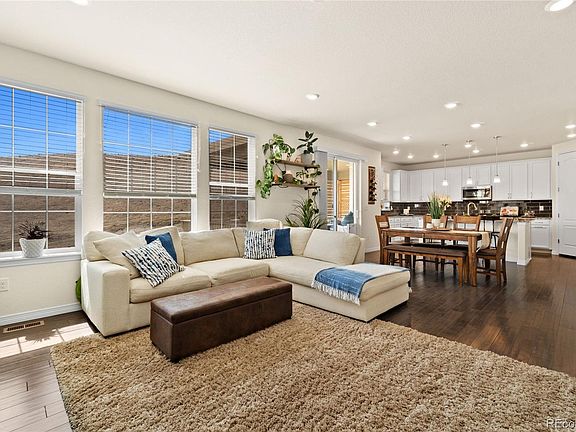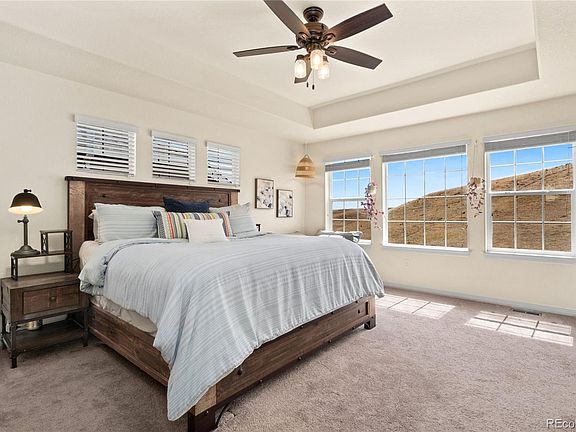 Welcome home to West Arvada’s popular Leyden Rock community, on one of the coveted lots backing to open space! You'll love the natural light that fills the spacious living room featuring one of two gas fireplaces. The open concept is perfect for hosting & the ideal layout to keep an eye on little ones easily while preparing meals. Chefs of all skill sets will love the generous & beautiful quartz counter space, gas oven, appliance station, and walk-in pantry. Enjoy the covered deck that’s conveniently nearby for meals or to sip morning coffee while watching Colorado’s beautiful sunrises. The main floor bedroom and full bath are ideal for elderly guests or provides an office close to snacks. The owner’s entrance mudroom will keep backpacks and shoes organized and accesses the oversized 2-car garage. The second floor hosts a sizable primary bedroom w/views of the open space and 5 pc ensuite with a substantial walk-in closet. The additional two bedrooms share a convenient full jack-n-jill bathroom. You’ll appreciate the laundry room nearby with a generous sized linen closet, this home has an abundance of storage! Downstairs, the garden level basement is bright and provides another living space with your second fireplace - perfect for game nights or snuggling up with a good book. Guests or older kids will appreciate the additional bedroom and bath down here, providing privacy and their own space. The unfinished area is set to store holiday decorations or can be used as a gym. Your private backyard hosts two patio spaces, ready for summer cookouts and entertaining. Upgrades include 8' doors, humidifier, smart lighting, & newer carpet. This amazing community hosts multiple gatherings for all ages including food trucks, movies, and holiday events. Enjoy the 17 miles of trails and parks, clubhouse, pool, and highly rated schools. Quick commutes to Boulder, Golden, and Denver give you the ultimate CO foothills living - Come discover why this area is so highly sought after!