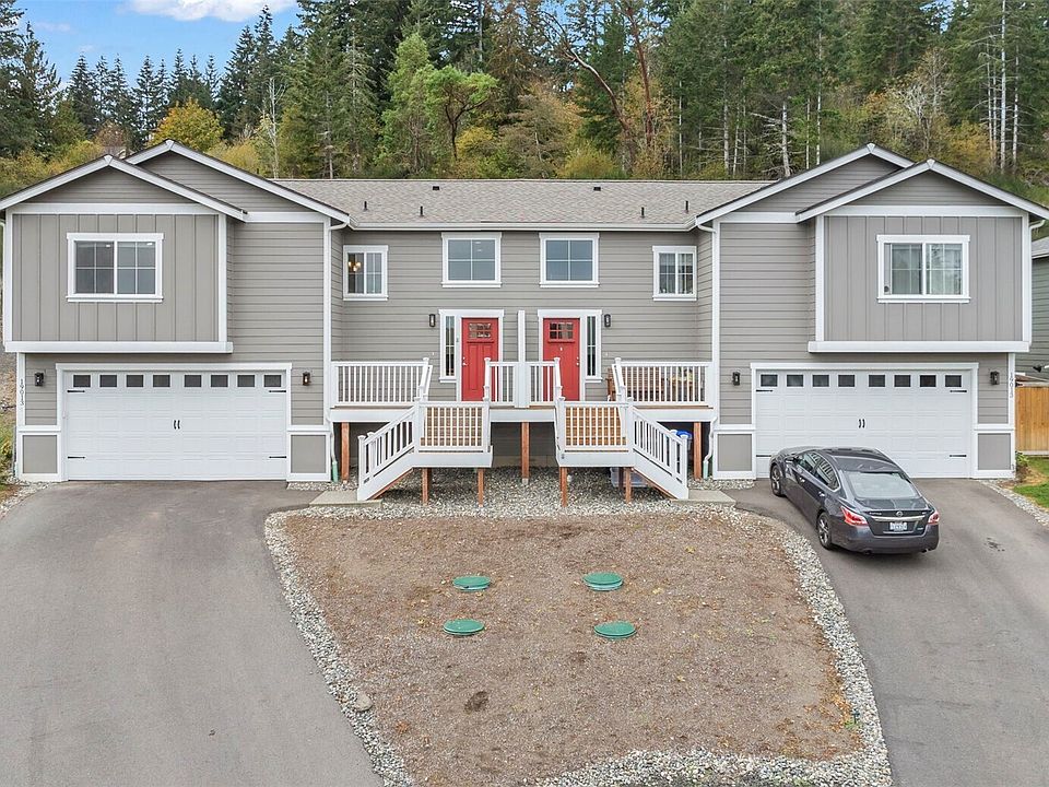 This condo is currently occupied with a month to month lease at $2,425/ month. Built in 2021, This stylish muti-level condo offers low-maintenance living in the heart of Allyn. The lower level features a spacious bedroom, full bath, laundry, & family room with easy access to the attached 2-car garage. Upstairs, you’ll find the light-filled great room that opens to the modern kitchen perfect for entertaining! The primary suite includes a full bath & walk-in closet, plus 2 additional bedrooms & a half bath complete the space. Step out onto the balcony overlooking the fully fenced backyard, complete with stairs for easy outdoor access. Enjoy abundant natural light + prime location near Lakeland Village Golf Course, the pier, & the boat launch.