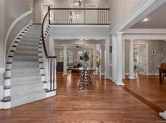 Stunning home on the 18th hole of the River Run golf course! Walk through the custom Clark Hall door and be welcomed by the grand foyer. The natural light pours through the plantation shutters as you walk through the den and into the modern kitchen which features a double oven, farmhouse sink, and quartz countertops. Passing the music room, you will find the main level master bedroom. Walking outside into the patio, you see what truly sets this home apart. You are immediately struck by the view of the 18th hole and the breathtaking golden sunsets. The view is not to be outdone by the custom Anthony Sylvan saltwater pool that features a hot tub and custom lighting throughout. The second floor is comprised of the secondary bedrooms and a bonus room perfect for both study and leisure. The third floor is yet another oversized bonus room, equipped with a full bathroom, plenty of storage space, and a balcony overlooking the backyard.