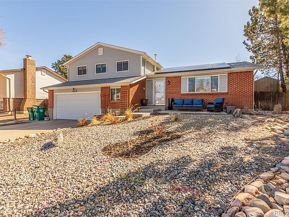 Beautiful home boasts 4 bedrooms and 4 bathrooms, with updates that are sure to impress. NEW ROOF going on before close!!! The front yard features a recent Xeriscape conversion, a new porch, and stairs. Upon entering the home, you'll find a sunlit and spacious formal living room and dining room with new Premium Luxury Vinyl flooring. The updated kitchen features maple cabinets and Stainless Steel appliances. Upstairs, you'll find the spacious Primary bedroom with an ensuite bath, two additional bedrooms, and another full bath. The lower family room is cozy with a wood-burning fireplace and offers access to the laundry room (with washer and dryer included). The newly finished open basement features Premium Luxury Vinyl flooring throughout the flex space and bedroom. The basement's spa-like bath includes an oversized walk-in shower and marble flooring. This home is situated in a premium location, backing onto a greenbelt/park accessible through the backyard gate. You'll save money on utilities with the solar panels (Buyer to assume the Remainder of the Solar encumbrance). The large, flat backyard features a covered deck, perfect for relaxing or entertaining. Other updates include new gutters, a recently serviced furnace, new hot-water heater, popcorn ceiling removal in living areas, and fiber optics being completed summer/fall of 2024. This home is conveniently located within a short walk to the local school and Seven Hills Park, and a quick drive to recreation centers, shopping, dining, E-470, and Buckley AFB. Don't miss out on this opportunity, as it won't last long!