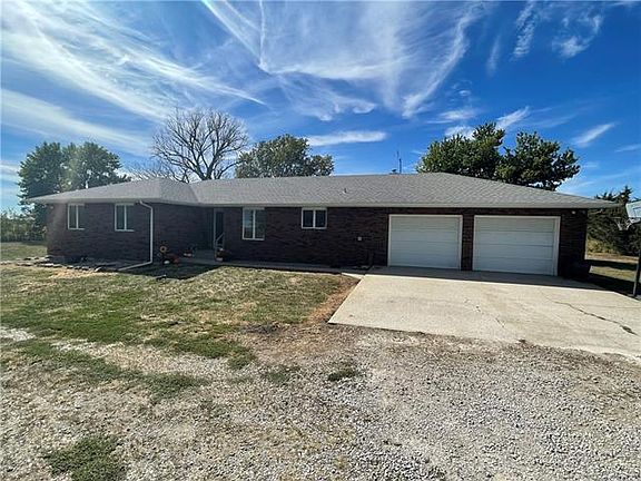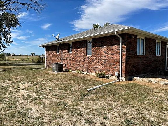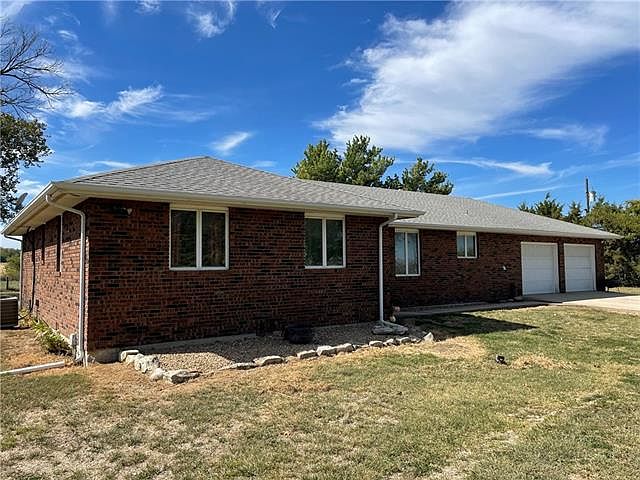 Lovely all-brick ranch home on 3.6 Acres in Deerfield, Missouri, featuring: Anderson windows, wood-burning fireplace, central air, radiant heat, kitchen/dining room, spacious living room, master suite with private bathroom, two guest rooms, guest bathroom, laundry room w/ large shop sink, oversized two-car attached garage on Paved Road.