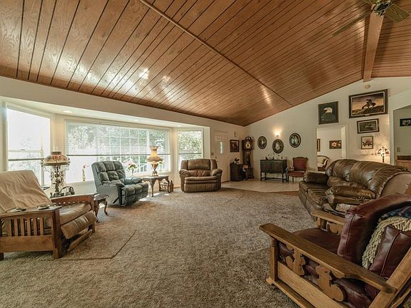 Wonderful custom built home has 3 bedrooms(3rd has no closet) 2 Baths. Attached 3 car garage is fully finished. Super Good Cents Home. Unique floor plan with very little wasted space. Lots of built-ins in Master Bdrm/Bath Suite, Living Room, 3rd Bedroom/office. Great Room has Living Room, Dining and beautiful Vaulted ceilings. Has slider to huge redwood deck and back yard. Lovely flower beds, tree and bushes with lots of perennials. Birds, squirrels and deer play in nearby areas. Separate Studio has power and is heated with a bath and kitchen area and was all home built. Has wood stove, septic tank and metal roof. Very well insulated. Large Shop 40X26 with 8'overhangs. All buildings have metal roofs. Acreage adjoins BLM on North Side.