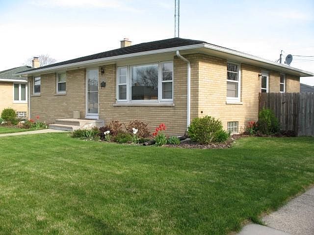 All brick ranch located on north side. 2 large bedrooms, hardwood floors, updated kitchen with new counters and flooring. Partially finished basement with bar and 3/4 bath. Over 1100 sq ft. All appliances included. Fenced in back yard and beautifully landscaped. 2.5 car garage.