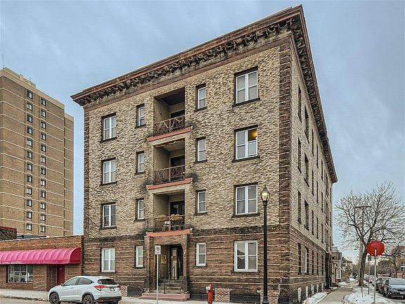 Enjoy the skyline view and purple stadium out the living room and both bedrooms in the historical Hudson building in Steven's Square. The building has 8 on this side filled with a mix of artists and professionals who make a point of knowing each other and being community focused. The neighborhood is vibrant and diverse, close to MCAD, the Civic Center, and walkable to downtown Minneapolis. You're 6 blocks from Eat Street with plenty of green spaces and local businesses. Super sunny unit with updated kitchen and bathroom, original hardwood floors, clawfoot tub and built in buffet. Enjoy the gorgeous sunrise out the 3-East facing windows, and the sunsets off the skyline out 5-north facing windows (all double hung vinyl clad windows providing insulation from the cold, while letting the sun's heat in. This unit has been well maintained. Heat, water, garbage, keyless entry, free laundry and storage all included in the association fee. Ample street parking all along the building.