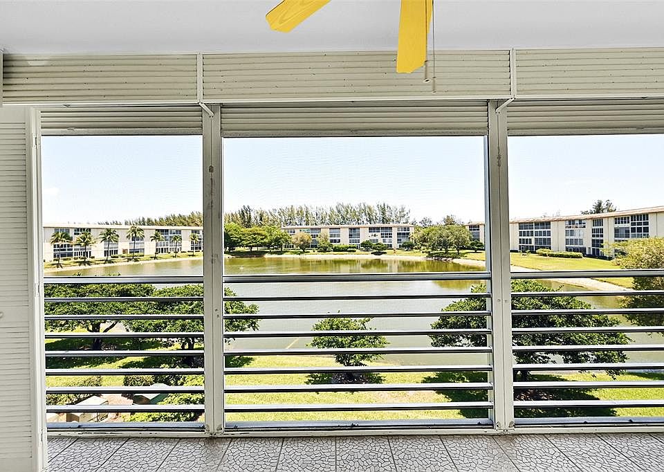 You will be pleasantly surprised when you enter this condo featuring all vinyl and laminate flooring. The updated kitchen boasts granite countertops and has been professionally painted, making it move-in ready. The air conditioning system is newer, installed in 2021. Enjoy a panoramic wide water view with a fountain, especially lovely in the evening when the fountain is illuminated. The large eat-in kitchen is equipped with updated appliances. Be sure to check out all the photos, and then see the condo for yourself. This floor plan includes the largest patio in all of Wynmoor.