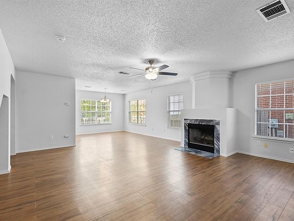 Cozy fireplaceAbundance of natural lightHandsome laminate flooringInviting great roomWalk-in closetHuge walk-in closetCeiling fan