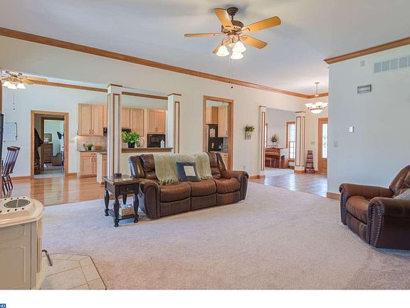 Custom Southern-style Ranch home on 3+ AC in Twin Valley School Dist. Loaded with wonderful curb appeal and features that will impress the most discerning buyers, this home includes plenty of room for everyone inside and out with over 4000 sq. ft of living space on the main floor and finished lower level as well as 3.15 AC of property to enjoy. As you walk up the paver-lined walkway, you will be impressed by the formal front porch columns and stained solid-wood, front door with side lights. The interior of the home features 9' and 10' ceilings throughout the main floor, a tile-floored foyer, a spacious and open living room and a gourmet kitchen. The kitchen includes an island work space, an abundance of maple cabinetry, a pantry, corian counters w/ a built-in sink and tile backsplash. There is also a breakfast area with a large triple window where you can sit and enjoy the view of wildlife in your own back yard. The main floor also includes a dining room just off of the kitchen, naturally finished crown molding and trim work and four bedrooms featuring a master suite and bath w/ whirlpool tub, walk-in closet and a set of French doors which lead out to the covered rear deck. The finished lower level w/ walk-out offers another complete living area with a second kitchen, full bath, open family room and an additional room that could be used as a 5th bedroom or office. This area would make a great space for entertaining, a possible theater room or a suite for extended family members. Other notable features include dual zone HVAC, wiring for back-up generator and a heated 2-car garage. Outside you will enjoy the fenced rear yard, lower level patio and added hardscaping. A definite must-see property and a great value in Twin Valley Schools. Don't hesitate to schedule a tour today!