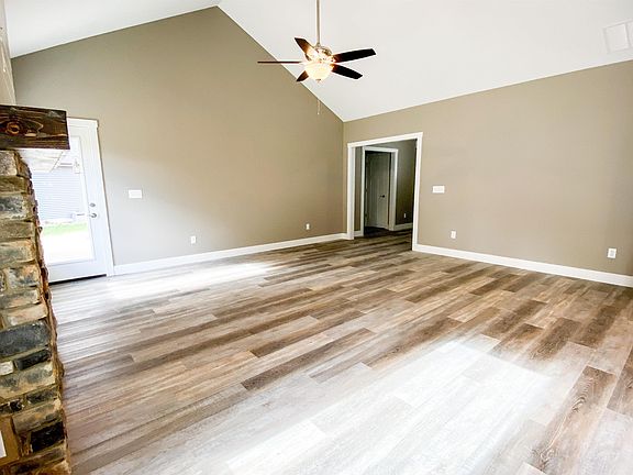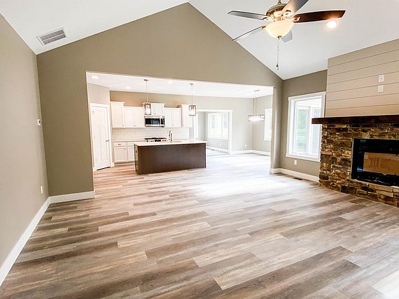 Brand new split bedroom, open concept floorplan ranch boasting over 2100 sf. Upon walking in you will notice the airy feeling you get with the vaulted ceiling in the living room. The kitchen has ample storage with plenty of cabinets, a good sized pantry, and an island all with quartz countertops and tile backsplash. Vinyl plank flooring throughout except in the bedrooms and office/bonus room. The master bedroom is grand with a tray ceiling and offers well equipped bathroom with a dual vanity and massive closet. There is not one, but two beautiful fireplaces! One inside, one outside where you can enjoy the evening out on the covered peaceful patio in warm comfort overlooking the golf course. Closets were done by closet solutions. Stainless steel appliances are included.