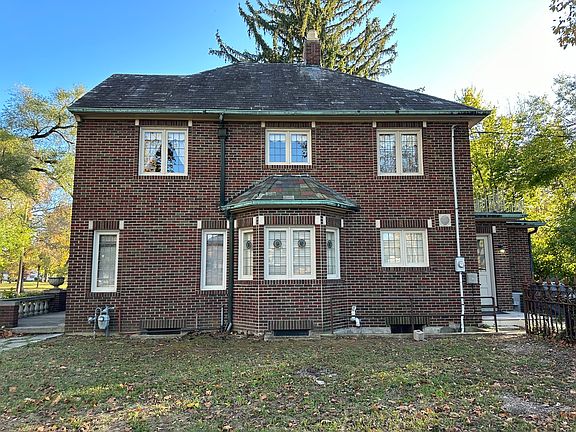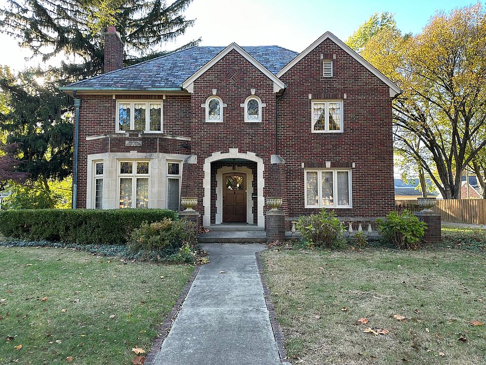 This 1936 historic 4 bedroom, 3 bath home is located on a corner double lot in one of the most desired locations in Columbus. The home has endless charm and is close to downtown, shopping, schools, and across from a park where social and sports activities occur for all ages! Vintage features original to the home include: slate roof, copper gutters, Medora wire-cut full brick exterior with Bedford limestone accents, beautiful handcrafted wrought-iron baluster and upper floor railing, leaded glass casement windows with stained-glass feature, unique tile work in bathrooms, 1-1/2 inch wide hardwood flooring throughout main and upper levels, cherry crown molding - baseboards - trim - 8 panel doors - and decorative detail on dining room walls, crystal door knobs, leaded glass built-in cabinets, lined window flower box with drain outside of master, arched doorways and front door/entry, drop-in mailbox, 19th century iron fence from downtown Columbus, and a laundry chute on main/upper levels. Home also includes a Mother-in-law suite with a full bath. Home is being sold AS-IS! A home inspection was conducted on 10/18/23 and is available for viewing.