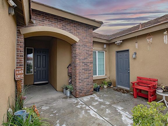 This stunning 4-bedroom home, with a connected in-law quarter, RV parking, and a 2-car garage, offers both comfort and functionality. The thoughtfully designed split-wing layout features a spacious great room, an open kitchen with granite countertops, a large island with a sink, and a breakfast area. Enjoy the convenience of adjustable closet racks and an indoor laundry room. The primary suite boasts a walk-in closet and an ensuite bathroom with a separate tub, and a walk-in shower. The private in-law quarter includes its own bathroom, a living area with a kitchenette, and a separate entrance. Step outside to a backyard designed for convenience and entertainment, featuring a covered patio, a storage shed, and a 45' RV parking space equipped with a 50-amp outlet and easy sewer clean-out access. Additional highlights include a PPA solar system with a backup battery and CAT5E cabling. Located in the highly sought-after Fruitvale School District and close to other amenities.