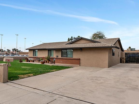 This FANTASTIC LOCATION offers an OVER-SIZED CORNER LOT, WALKING DISTANCE to the SCHOOL, and BEAUTIFUL CURB APPEAL with large grass yard and BRICK and STUCCO front exterior*You will have a GREAT ROOM floor plan with three bedrooms and two bath*NEWER FRONT WINDOWS*Inside laundry*ENTERTAINER'S BACKYARD includes EXTENDED COVERED PATIO, large sitting areas at the GAZEBO and second sitting area at PERGOLA, FRUIT TREES, and concrete pad*STORAGE SHED*Enough PARKING for 5 CARS at MINIMUM and room for carport if desired*COME BY and see why YOU WILL WANT TO CALL THIS PLACE YOUR HOME*