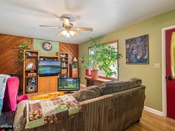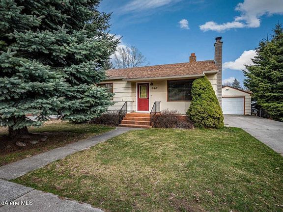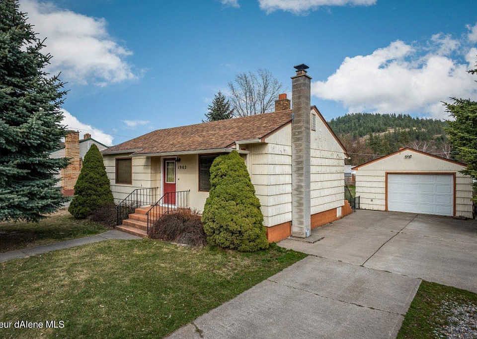 Awesome midtown location with a full basement on a double lot! Well cared-for 4 bedroom 1 bath home is a great opportunity for a starter or an investment property. Full size finished basement has two non-conforming bedrooms and a cozy brick fireplace in the family room. Outside find Mountain views and a fully fenced backyard that gets plenty of sunshine for a garden area or outdoor patio. Detached 2 car garage with additional workshop space attached. Plenty of room for a shop in the back. Easy access to Hwys, schools, lake, and downtown Coeur d'Alene shopping and entertainment!