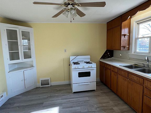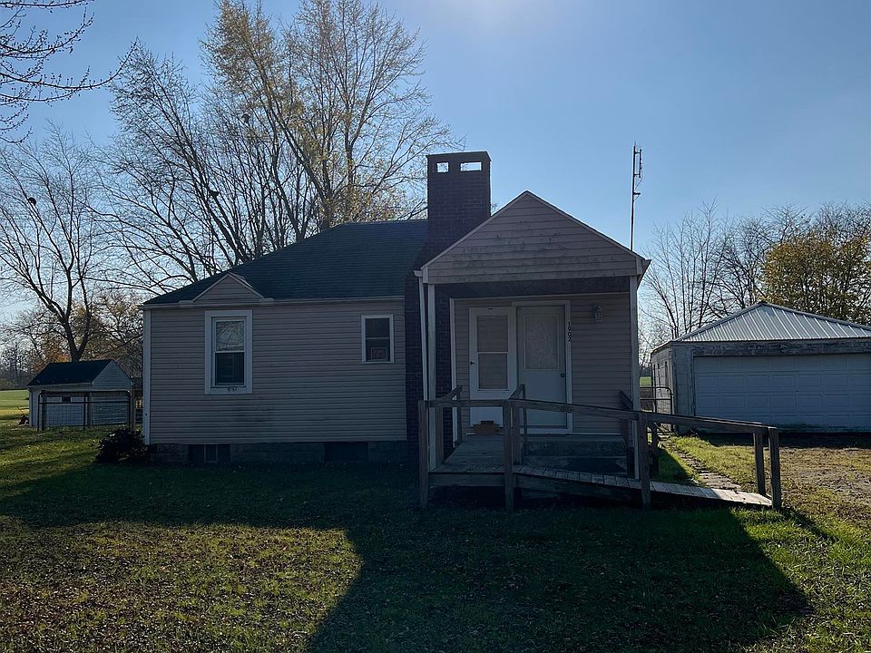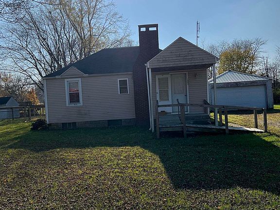 This cute 2 bed, one bath one story with a full basement. Living room, kitchen, and laundry room. A cute back porch with a fenced in yard with a 2-car det. garage this property sites 0n 0.87 acres with a creek in the back.