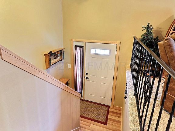Remodeled 3BR/2BA twinhome in established south Fargo neighborhood with big yard. New Engineered Hardwood flooring & maple doors, trim & base. Newer windows & roof. Upstairs includes a new kitchen, living room with wood burning FP, dining with patio door to deck with new railing, laundry room & remodeled 1/2 bath. The lower level has 3 bedrooms and a 3/4 bathroom with heated tile floor, tile shower, new vanity, sink, faucet and toilet. New mini split AC/heat pump, new storm door, exterior paint, garage door and shed.