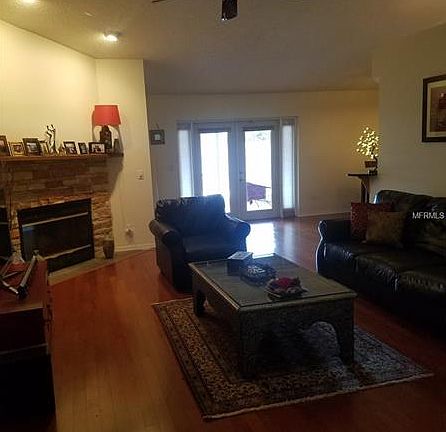 This lovely home in Sterling Ranch is conveniently located with easy access to the Crosstown and Interstate. The home features a spacious open floor plan with vaulted ceilings, wood burning fireplace, hardwood floors & 16x16 tile floors in foyer, kitchen & bathrooms. Remodeled kitchen has granite countertops, tiled backsplash, under-cabinet task lighting, stainless appliances, Russian Birch wood cabinets with pull out shelves, raised panel doors and oversized, deep stainless steel sink. Beautiful living room/dining room combination with fireplace and French doors leading to 20x12 covered screened lanai is perfect for entertaining guests. Covered front entry with brick pavers, 3 inch Plantation shutters, irrigation system, big corner lot, fenced, with mature oak tree for shade. Park, playground and community pool available for your enjoyment. LOW HOA & NO CDD.