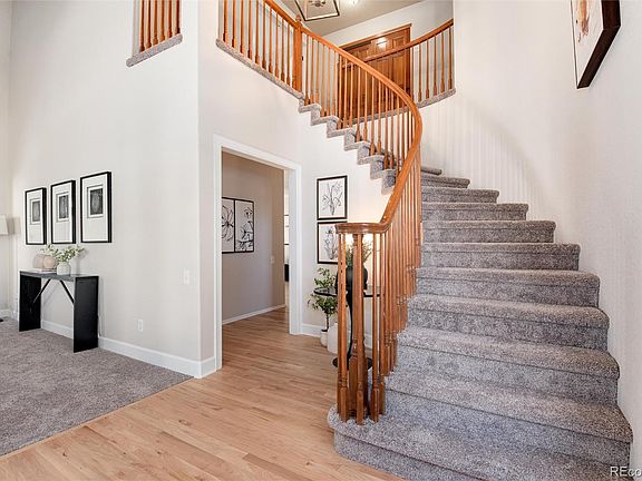 Welcome to this beautiful home, in the highly coveted Peninsula community, with the Highline Canal Trail just steps away! This home features a newly renovated kitchen offering a perfect blend of modern elegance & functionality. The stunning waterfall quartz countertop seamlessly flows over the edges, creating a sleek and luxurious look. The bright breakfast area is ideal for everyday dining, while the formal dining room is perfect for entertaining guests. Retreat to the primary suite with its spacious, sunlit seating area with large bay window, offering a private oasis. The primary bathroom has been entirely reimagined for a spa-like experience. Dual vanities with ample counter space and modern fixtures add convenience and luxury, while the tile floors are enhanced with beautiful accent inlays, creating a unique and timeless design. The frameless glass shower is a stunning focal point, with intricate tile selections that add texture and warmth to the space. For ultimate relaxation, a luxurious soaking tub invites you to unwind and rejuvenate, completing the perfect retreat. The basement offers versatile living space, ideal for a caretaker’s suite or a perfect area to entertain guests. Relax and enjoy the peaceful surroundings on the large wraparound patio overlooking professional landscaping or take a stroll on the private pathway along the water's edge of McClellan Reservoir with a sweeping backdrop of mountain views. The finished 2-car attached garage enjoys natural light, with community guest parking just steps away. Enjoy a low-maintenance lifestyle, enhanced by the HOA amenities, including a swimming pool and tennis courts, with the delight of Writers Vista Park just a short walk away. New concrete hail-resistant 50-year roof installed 2022. Conveniently located near C-470, easy access to the mountains and DIA, as well as shopping and dining options at Aspen Grove. Welcome to your new home, where comfort, convenience, and community come together effortlessly.