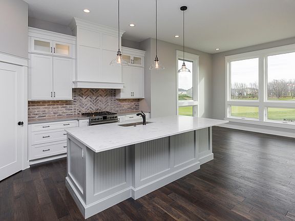 Enjoy the incredible view of the Legacy Golf Course from this new construction 5 bedroom Walkout Ranch by Cedarbrook Builders. With over 3700 finished sq feet this home is located on cul-de-sac. The entry leads to open main level with 11" ceilings including; living room, fireplace with floor to ceiling stone surround, floating shelves, 9 ft. windows on back of house, kitchen with center island, granite countertops, under cabinet lighting, 6 ft side-by-side fridge/freezer. Master Suite features double vanities, tile shower, tub and walk-in closet. 2 additional bedrooms, full bath, powder room, mudroom with lockers and laundry room complete main level. The 1700 sq ft finished walkout lower level includes large family room with wet bar, 2 bedrooms & full bath. LED interior and exterior lights throughout house. Covered deck and lower level patio with direct views of Hole #8. Community clubhouse and pool, 5 year partial tax abatement.