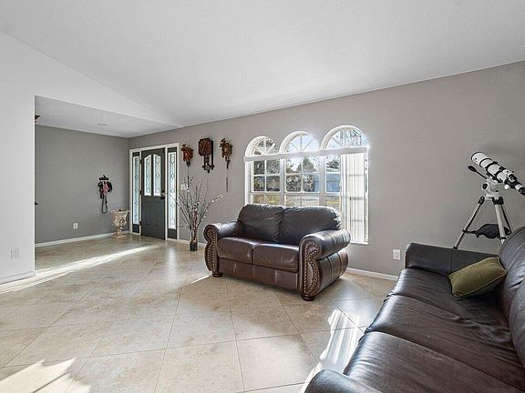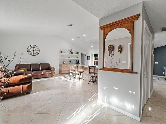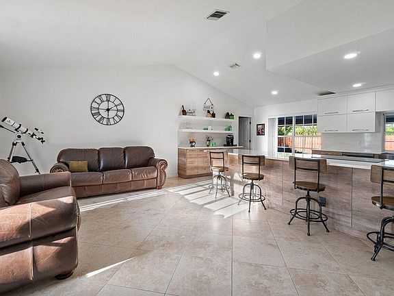 Exquisitely remodeled in 2020 this 4bd 2ba CBS split floor plan w/2 car garage features stunning custom kitchen at its heart! Kitchen boasts 11ft white quartz counter top that seats 5 , custom white/oak cabinets w/hidden popup shelving for space saving convenience, black ss appliances and large coffee bar at far end of kitchen, just amazing! Additionally home features 20'' tile thru-out, interior utility room w/extra storage, remodeled bathrooms w/granite, pocket bedroom doors, 600sqft covered patio w/euro-tile, accordion shutters, completely fenced in yard plus house wired security system w/cameras. All of this is located in the heart of Wellington minutes from polo grounds, schools, fine dining, shopping & movie theaters ...Wellington is approved for golf carts use on sidewalks!