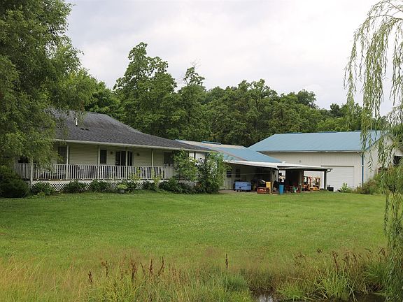 Three Bedroom, 2 Bath home with separate office on 5 acres with several Nice Outbuildings Beautiful Pond, Basement, Wrap around porch. Must see to appreciate.