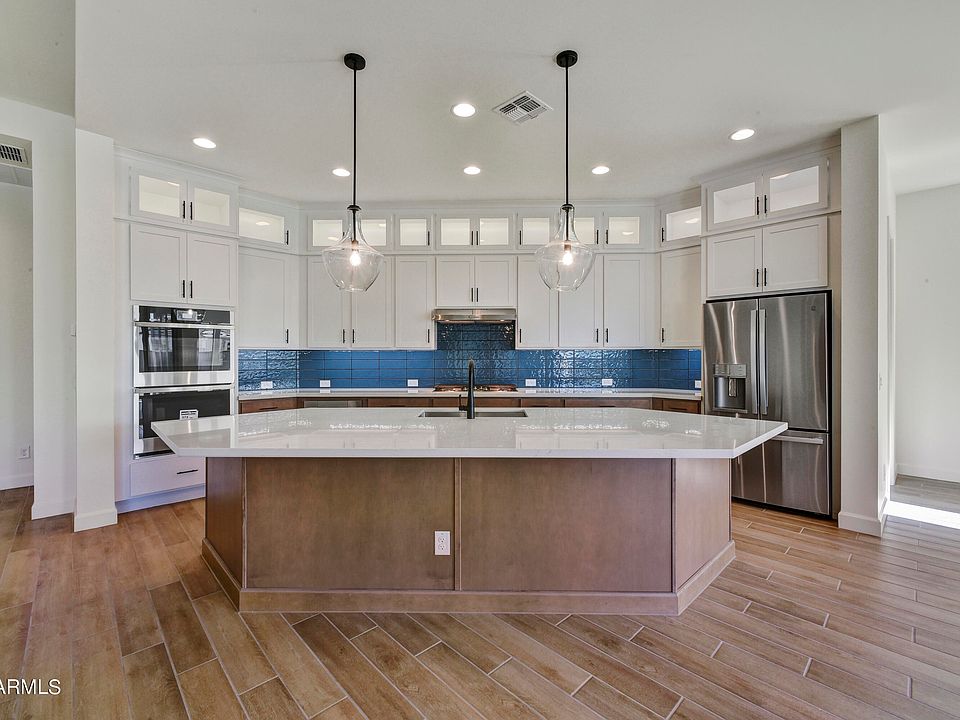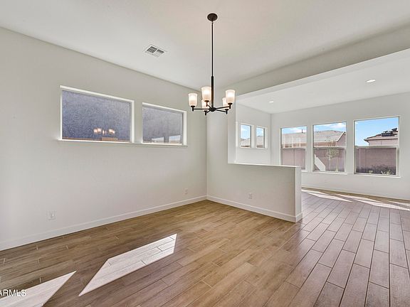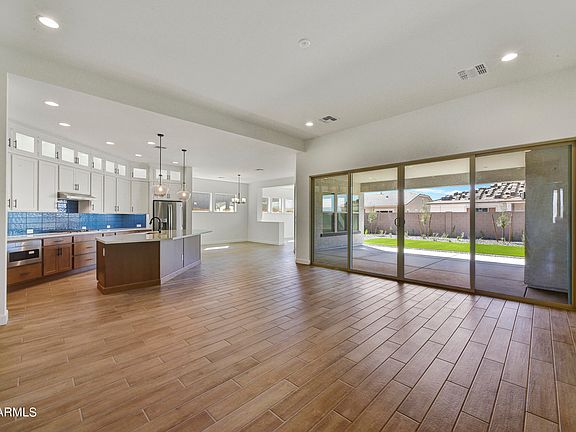 An 11' ceiling at the Family Room and 16' Multi Sliding Glass Door, making this home perfect for the indoor/outdoor living that is so desired in Arizona. You can enjoy the bright and cozy feel of the Sunroom located off the Dining Room or venture out onto the large Extended Patio to enjoy the outdoors. Located on a Corner homesite, this special plan has many highly desirable upgrades, such as the Extended Family Foyer with Backpack Rack and upper cabinets which helps to keep belongings organized, Manhattan Drywall Finish with Square Drywall Corners and mitered Base Boards, Super Shower in Owner's Suite, Gourmet Kitchen with Gas Cooktop, upgraded cabinets and countertops, along with a custom backsplash and walk in pantry. Too many additional upgrades to list, make this home a Must See!