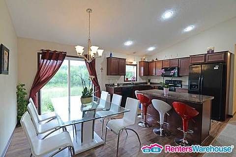 LIKE NEW -- built in 2013, lightly lived in. 3-car heated garage with built-ins!! 3 BD, 2 BA. 1350 sq ft finished UL plus another 1200 sq ft unfinished LL walkout to patio and nice backyard w/ raised garden beds. SPACIOUS! Upper level beautiful kitchen with eat-at island and slider door that overlooks wooded views. Very clean home ready to move in!! MUST SEE to appreciate! Rent $1595/mo plus $7/mo process/report fee. SCHEDULE SHOWING ONLINE OR EMAIL Lawn care, snow removal, all utilities responsibility of tenant. Apps $55/adult. Security Deposit equals rent. PETS: A SMALL DOG OR A CAT welcome with owner approval, pet deposit. NO SECTION 8