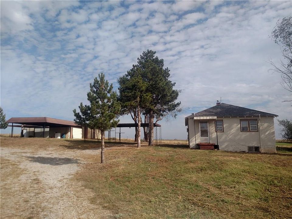This house has been remodeled and has so much character. It is in a very quiet beautiful area off of Cemetery road. Close to Sayre and Elk City. Plumbing and electrical updated. New flooring, new light fixtures. A country kitchen with stove. There is a very large basement which could be additional space for living and has been updated. This home has 2 living areas and 2 bedrooms. It is very energy efficient due to block wall construction. There are also 3 shops and a carport. All on 2 acres and partially fenced. Truly a unique property.
