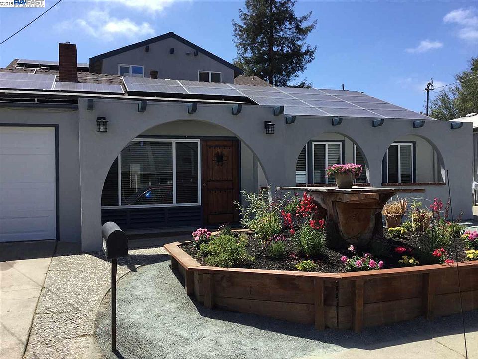 Immaculate 5 bedroom 3 bath home with a 2 car oversized garage in the rear and a one car garage in front. QUIET location at the end of a cul-de-sac. Fresh paint inside and out. Upgraded kitchen with new cabinets, granite counters, stainless steel range, microwave, and DW. Equipped with dual paned windows and a SOLAR system lowering the electric bill to nearly nothing. Plenty of room for a boat or RV. Clear Termite report so VA offers welcome. Lowest priced 5 bedroom in Castro Valley by $490,500. Very reasonable sellers!