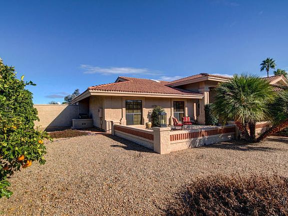 Gorgeous golf course home backing to holes #12 and #13 on the Quail Run course with stunning mountain views. Great curb appeal with mature landscaping & fruit trees. Large kitchen with pecan stained cabinets, slab granite countertops, stainless steel refrigerator and sink, cooktop, and a center island. Breakfast room features coffered ceiling. This home boasts 3 bedrooms and an office with a built in desk and storage closet. All baths have been updated. Master bath has double sinks, walk in closet and a sliding patio door to private atrium garden- perfect location for a spa. Outdoor area features front and rear patios - an ideal arrangement for enjoying the sun, shade whatever suits your fancy.