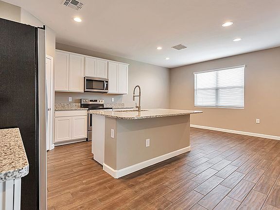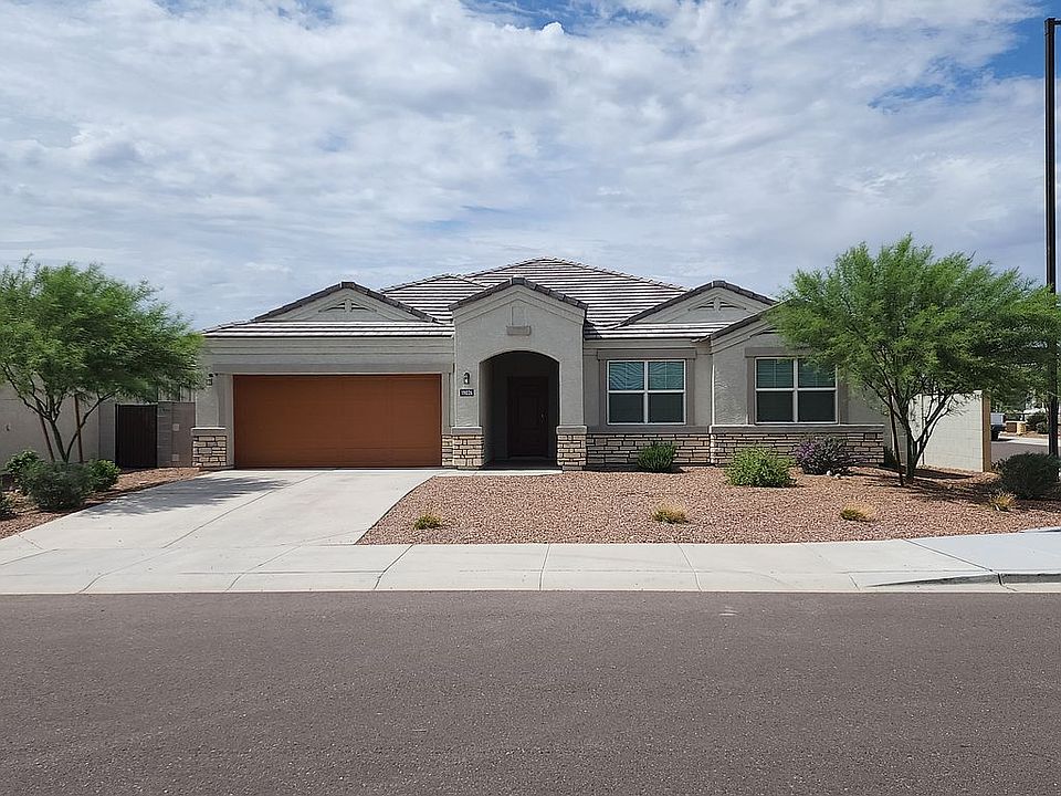 Available immediately for move in at this beautiful smart home. Come preview the home today. Easy access to I10. This open floor plan 4 bed / 2 bath home has lots of upgrades to enjoy. The front porch leads to the great room which is the heart of the home. The kitchen and dining room share an open space with granite countertops, white hardwood cabinets, a walk-in pantry, a large kitchen island and stainless appliances. The first bedroom has a full bathroom with a double sink vanity and a large walk in closet. The home has Smart Home Technology, Built-In Pest Control and front yard landscaping. Large backyard on a corner lot. Property close to playground.