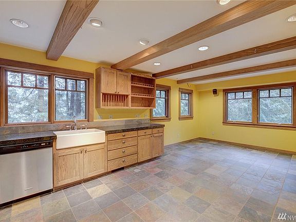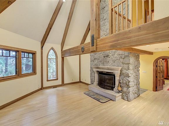Built in 1999, this custom built home is situated on a serene wooded lot just shy of an acre. Enter through the custom Tudor arch door to the living room with vaulted ceilings, stone fireplace, & wood beams. Kitchen features slate floors, Viking gas stove, & farmhouse sink. Family room with built in bookcases & hidden 1/2 bath, Master suite with stone fireplace, 2 walk-in closets, & claw-foot tub. Finished basement with 2nd bed, 3/4 bath, attached garage +carport. 4 bedroom Septic. New Roof 2019
