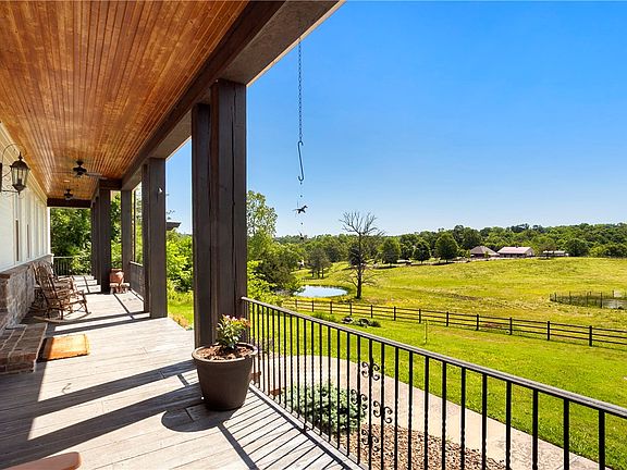 Beautiful custom built estate on 8.45 acres. Boasts Brazilian Koa wood floors, custom ceilings, wood beams, built-ins, natural lighting and many more features throughout. Large living, formal dining, eat-in gourmet kitchen w/nook, butler's pantry, wet bar, office, one-of-a-kind "Narnia" room, and each bedroom has private full bath. In-ground pool off patio w/outdoor fireplace. Detached 3 car garage w/apartment upstairs and office. Fenced property has barn w/horse stalls, practice shooting target and pond.