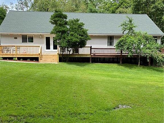 Location Location Location...3 minutes from Apple Valley Lake. Sitting on 5.5 acres this home has 3 large bedrooms...2.5 baths...eat-in kitchen...open concept kitchen/living room...main floor laundry. Master bedroom has French doors leading out to deck. Full walk-out basement that is yours to finish. Attached garage and a detached 30x40 garage. Detached garage has an area in back that is not concreted and blocked off for animals. Deck wraps 3/4 of the way around the house. Updates include: new patio doors...water-proof paint on basement walls...new electric panel...new fascia, soffit and gutters...new refrigerator and dishwasher. Hunters...there is a tree stand and a feed plot.