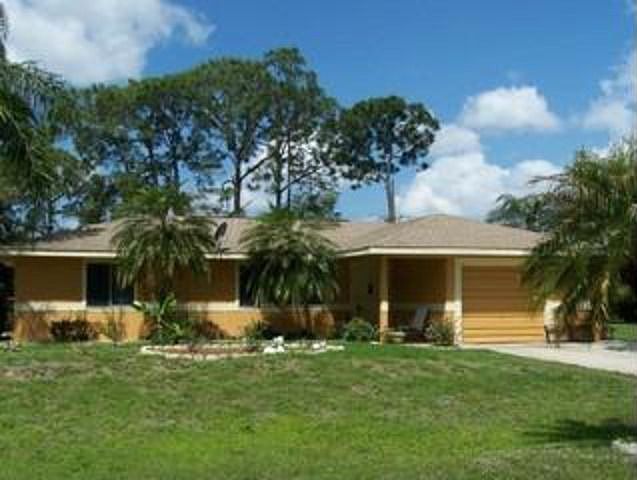 This spacious 3 bedroom 1 bath freshly painted single family home is mostly title with new carpet in 2 of the bedrooms. The 3rd bedroom new tile and built in (book) shelves.Kitchen has plenty of cabinets and counter space as well as a separate dining area.Plenty of privacy with a screened in Lanai and fenced in back yard. Pet Friendly w/pet fee.1 Year lease; Security Dep. First Month & Application Fees (last mo. is owner's decision)
