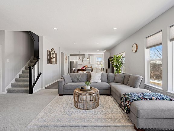 Great location in the Enclave at Dunlavin Woods, on a cul-de-sac and near neighborhood park. Nearly new David Weekley built "The Erie" floorplan! Great two story floorplan with large windows and a ton of natural light. White kitchen with large center island, great cabinetry, subway tile backsplash, stainless steel appliances with gas range plus an amazing additional back kitchen prep space with walk-in pantry. Open concept floorplan which connects the kitchen, dining room and living room with gas fireplace. Large front office or playroom space with sliding barn doors and huge closet space /additional room. Upper level features large primary bedroom space with raised ceilings, dedicated primary shower/bath, double sinks and large walk-in closet. Two additional bedrooms plus loft / office and laundry room on the upper level! Finished lookout lower level with lots of natural light and an additional bedroom and bathroom, as well as ample storage space. Reverse osmosis and irrigation system included. Large lot with wood privacy fence and tree line. Enjoy your morning coffee from the east-facing front porch! Great location within close proximity to all that the Maple Grove area has to offer, including ample shopping and restaurants as well as hospitals within 3-4 miles!