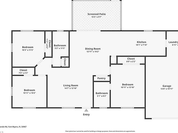Welcome to your dream home in the heart of San Carlos Park! This meticulously maintained residence boasts a modern kitchen featuring shaker cabinets with crown moulding and quartz countertops, complemented by stainless steel appliances. The open floorplan with tile floors and sliding glass doors ensures ample natural light throughout. Step outside to enjoy the screened-in patio and spacious fenced yard, perfect for entertaining or relaxing in privacy. Conveniently located near I-75, Florida Gulf Coast University, Gulf Coast Town Center, Southwest Florida International Airport, schools, local attractions, and restaurants, this home offers both comfort and convenience. With a new roof installed in 2018 and HVAC and water heater both under 5 years old, this home is move-in ready and awaits its new owners to create unforgettable memories.