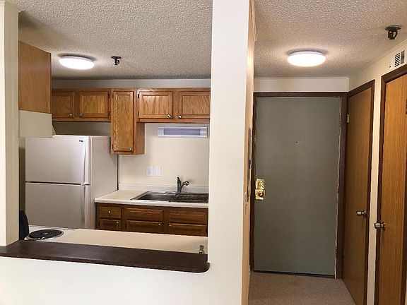 Bright, clean apartment in town, near the center of town, next to the creek and walkways. Galley kitchen with an open wall pass-through, extra large pantry, closets. Standard size kitchen appliances. Bright living room and bedroom. Heat included, tenant pay electric. Deposit is the same as one-months rent. Air conditioning. Large parking lot. Laundry in the building. Secured entry. No dogs. Friendly building. We take all kinds of assistance with a clean rental history. All tenants go through a screening process to check for criminal history and good payment of rent. And enough income to pay the rent.