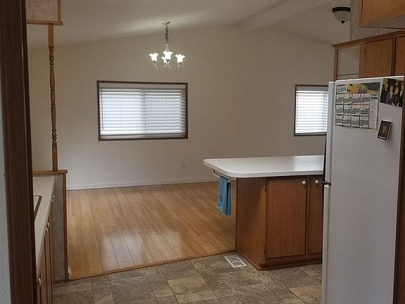 Accepted Offer with Contingencies. This 2 bedroom, 2 bath sits on it's own land with a detached garage. The property is fully fenced with gated driveway access. New roof and skylight installed approximately 1 year ago. Features include laminate flooring, vaulted ceilings, breakfast bar, and a heat pump to provide ideal temperatures all year long. The lot provides ample space for parking with room for RV. Water your garden and lawn without the cost of city water, home is on a shared well.