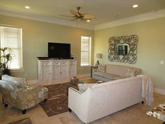 Newer home on the golf course in Sandestin Resort. This beautiful property has it all! Located on the fourth hole of Baytown golf course, you will enjoy the views from the private balcony off the master bedroom. Walk down the street to the Villa Lago Pool and Club House. Take a golf cart to the beautiful gulf beaches. Everyday is a vacation . . . enjoy golf, tennis, boating, fishing, great shopping and restaurants, and the gorgeous beaches. When you decide to come indoors, you will be delighted with the floorplan and finishes of this upgraded home. Upgrades include travertine flooring, wood flooring, designer lighting, three-piece crown molding and a golf cart garage. The kitchen features stainless appliances, oven with warming drawer, designer granite counters with waterfall edge, and solid wood glazed cabinetry. This home has plenty of room for guests with three bedrooms, a bunkroom, and three and one half baths. Most furnishings will convey or home can be sold unfurnished. This is not a spec home, but features custom finishes and upgrades! It hasn't been rented - only used as a second home.