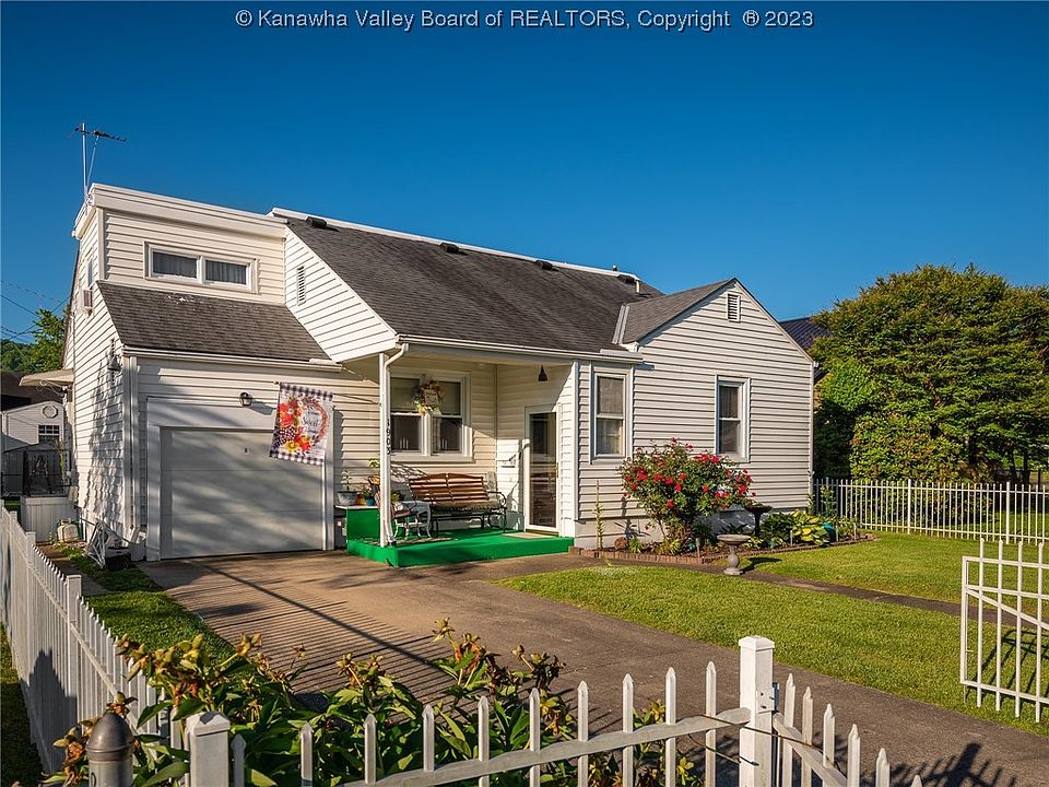Charming home on level fenced lot in convenient St. Albans location ~ New flooring on main level ~ Quaint kitchen with new refrigerator and dishwasher ~ Upper-level primary suite with adjoining room ~ Two bedrooms on main level ~ Abundant storage including spacious closets ~ Built-ins ~ Wonderful back yard plus covered front porch ~ Rear part of garage has been converted to laundry room so garage is used primarily for storage.