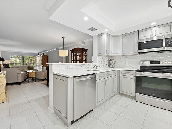 Looking for comfortable Florida living? Find it in this spectacular gated 55+ Community of Wynmoor. The community has golf available, tennis, pickle ball, pools, library and a state-of-the-art Theater that hosts shows and movies for your enjoyment. Wynmoor also has a newly renovated bistro. For additional entertainment there are over 150 clubs available. This private light and bright end unit is a 2 bed/2 bath with Knock down Ceilings, Crown molding, tile throughout the unit overlooking a pristine lake. The Kitchen has been updated and is bright with new cabinets stainless steel appliances, and quartz countertops. There is a screened terrace that has access from the living area and Primary bedroom. call and schedule your appointment today.
