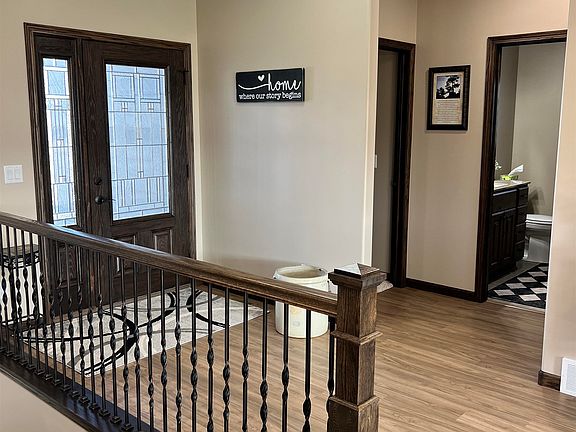 This charming one-year-old home in Northwest Norfolk, NE, offers modern convenience and style. With updated appliances including a double oven and electric cooktop, a spacious kitchen features a big island and a hidden pantry for easy organization. The walk-out basement adds versatility, while remote-controlled blinds enhance comfort throughout the day. Enjoy ample storage with walk-in closets and the practicality of a three-car garage. Outside, professionally landscaped grounds provide a picturesque backdrop. This property combines functionality with aesthetic appeal, making it a perfect choice for contemporary living!